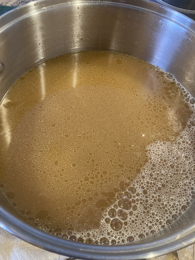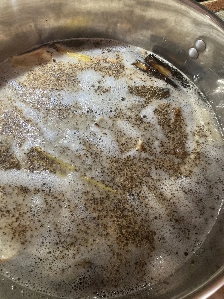 Simmer the bones. Reduce heat to low and maintain a simmer for at least 8-12 hours. Add water as needed to keep bones submerged.