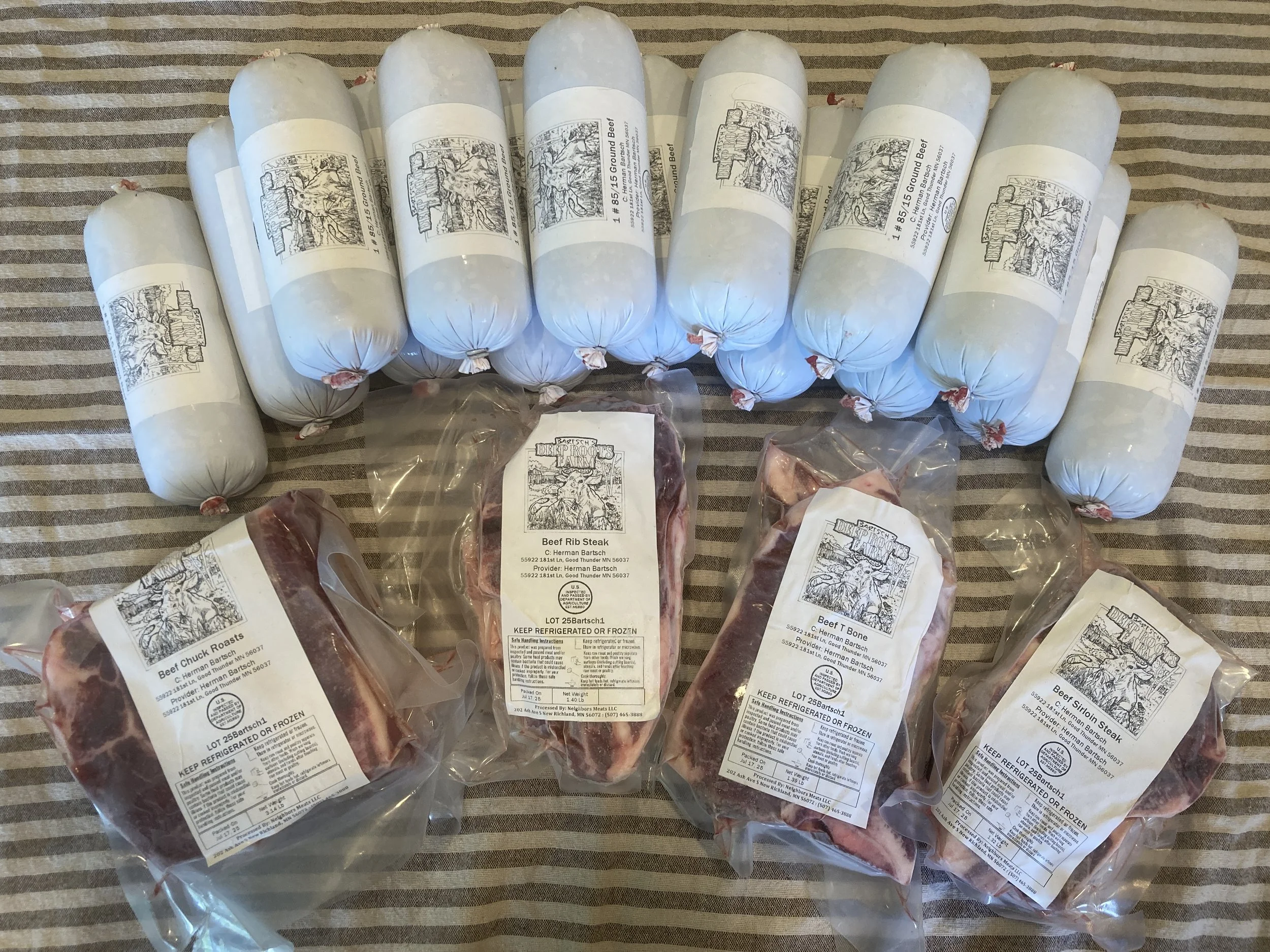 Beef will be processed at Dick’s Locker in Good Thunder. They will cut and package the meat according to your specifications. You pay us for the animal and the processor for the processing.